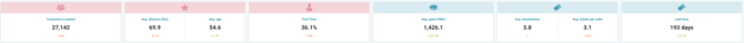 Key Performance Indicators (KPIs) are the metrics at the top of the dashboard that synthesise information related to performance within the chosen date range.