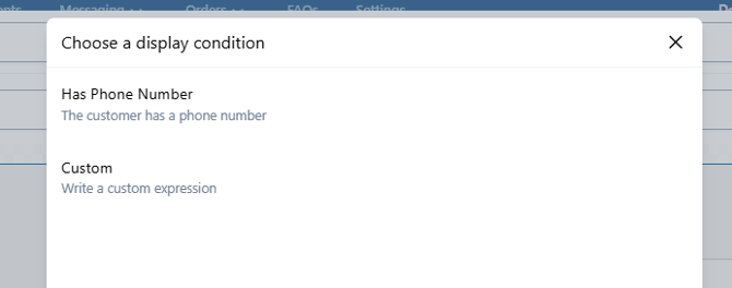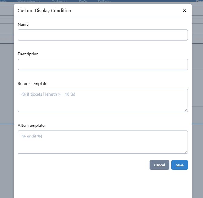 Next just write in the condition (support can help you with this depending what you want to achieve). In the example below the block will only appear for customers who have more or equal to 10 tickets.